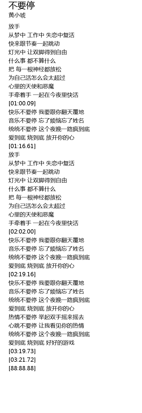 | [02:02.38] | 快乐不要停 我要跟你翻天覆地 |