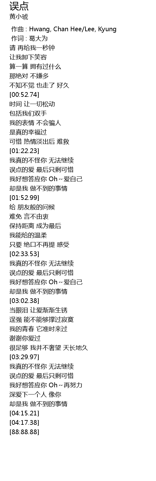 | [00:00.00] | 作曲 : Hwang, Chan Hee/Lee, Kyung |