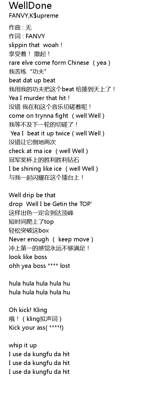 | wǒ yòng wǒ de gōng fū bǎ zhè gè beat gěi zòu dào tiān shàng le! | |