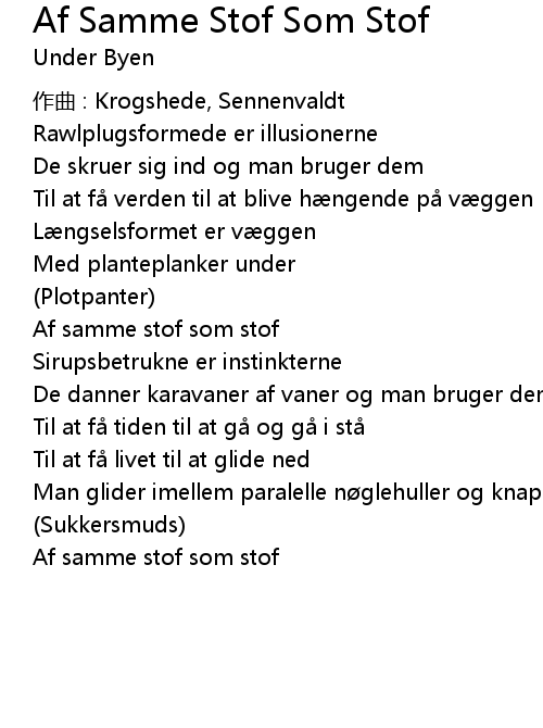 | Song | Af Samme Stof Som Stof |