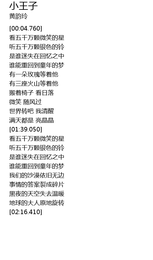 | [02:08.490] | hei ye de tian kong shi qu wen nuan |