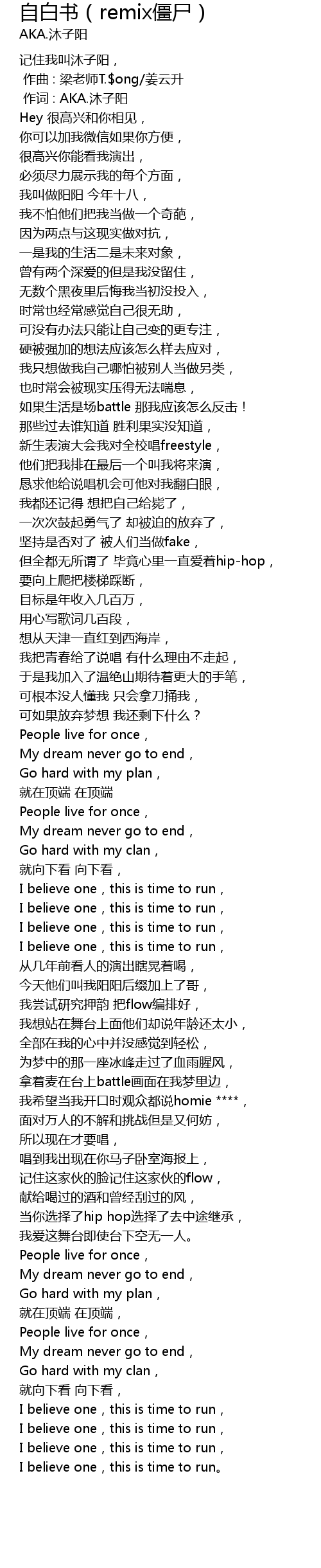 | [00:01.000] | 作词 : AKA.沐子阳 |