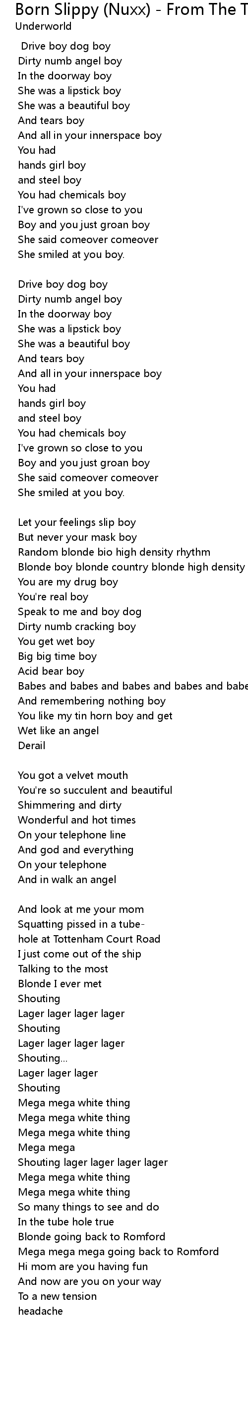 Born Slippy (Nuxx) - From The Trainspotting Soundtrack 1995 Lyrics
