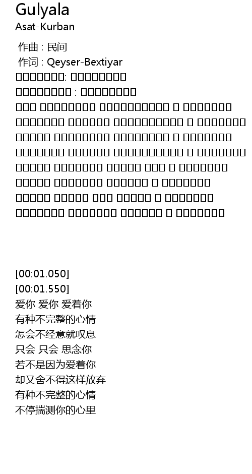 | [00:00.350] | 作词 : Qeyser-Bextiyar |