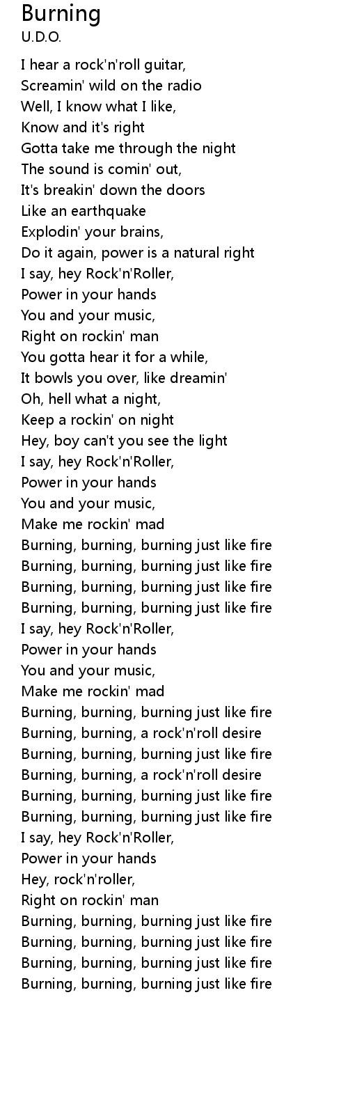 Burning, burning, burning just like fire |