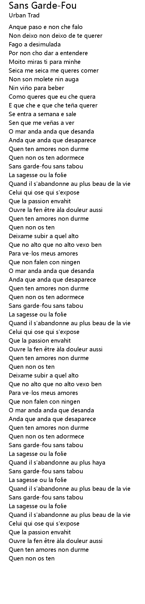 | Song | Sans Garde-Fou |