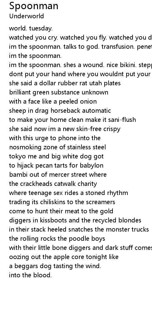 im the spoonman. shes a wound. nice bikini. steppin razor. |