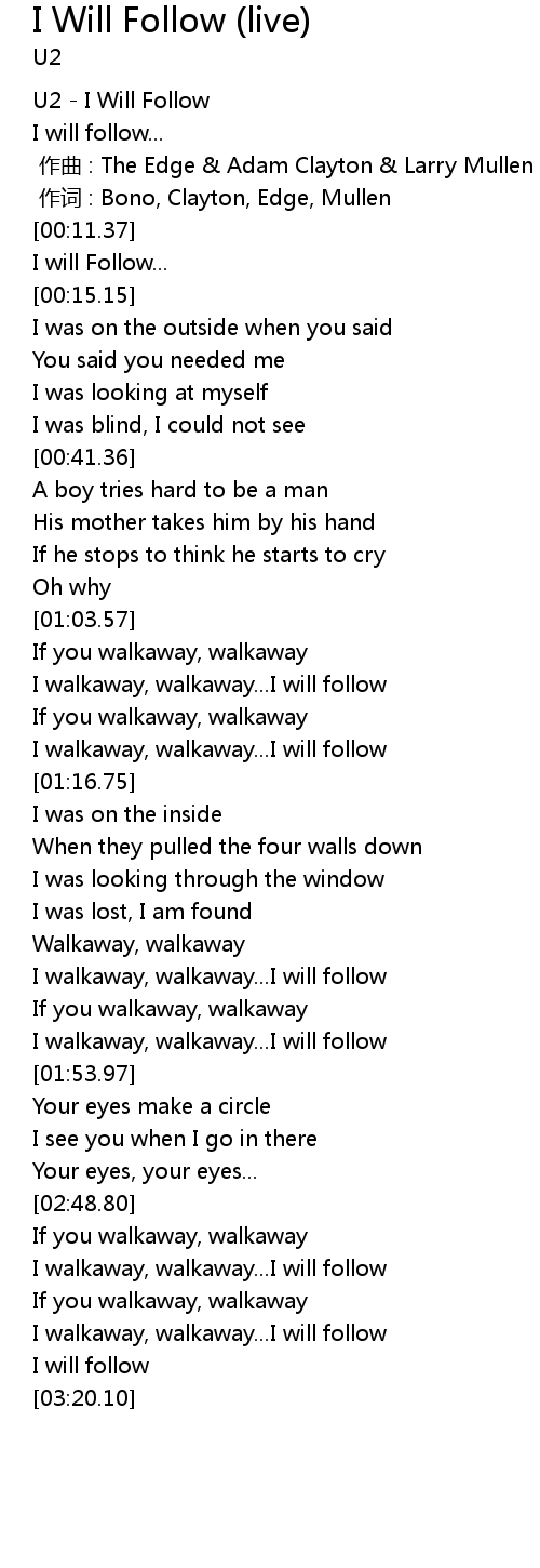 | [01:48.81] | I walkaway, walkaway...I will follow |