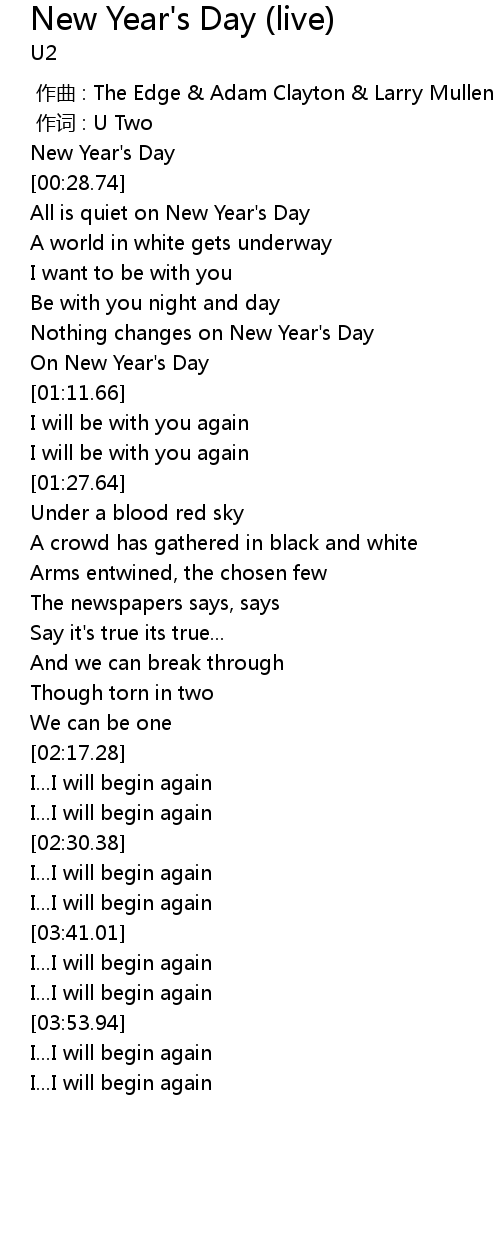 | [00:00.00] | 作曲 : The Edge & Adam Clayton & Larry Mullen & Bono |