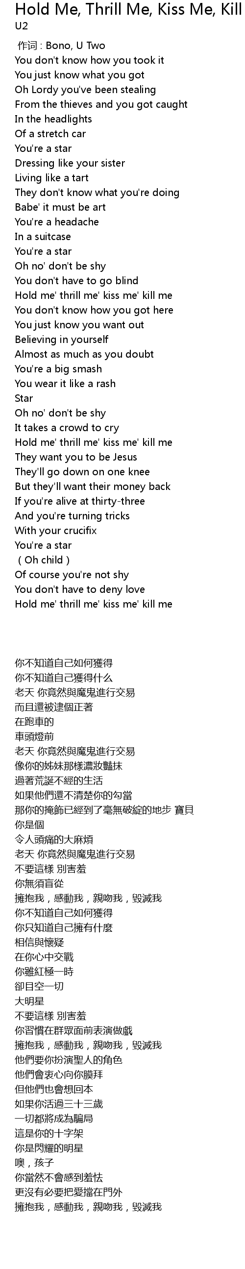 | [00:00.00] | zuo ci : Bono, U Two |