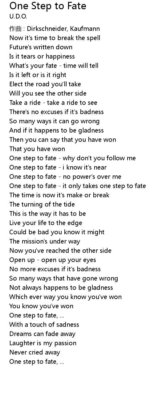 | One step to fate why don' t you follow me | |