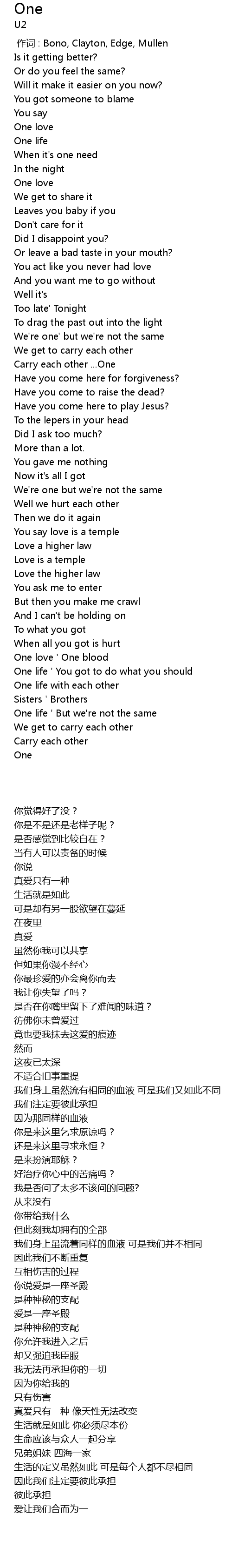 | [00:00.00] | 作词 : Bono, Clayton, Edge, Mullen |