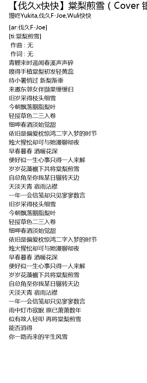 | [03:36.69] | 似有故人轻叩 再将棠梨煎雪 |
