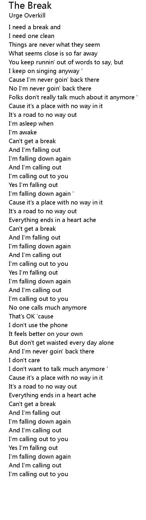 I need a break and |