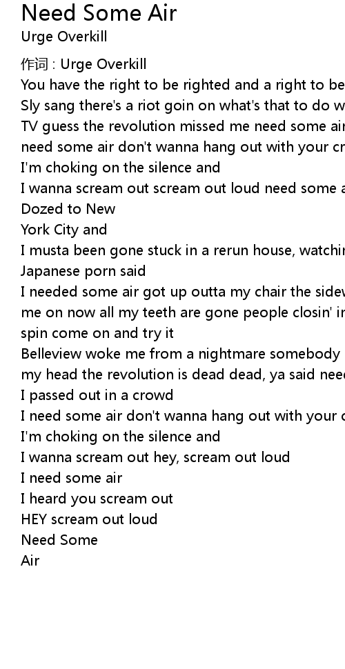| I wanna scream out scream out loud need some air | |