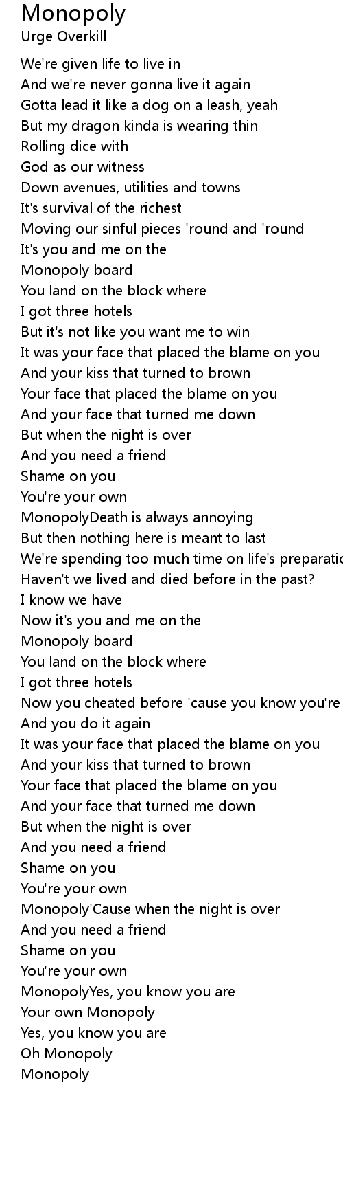 Monopoly'Cause when the night is over |