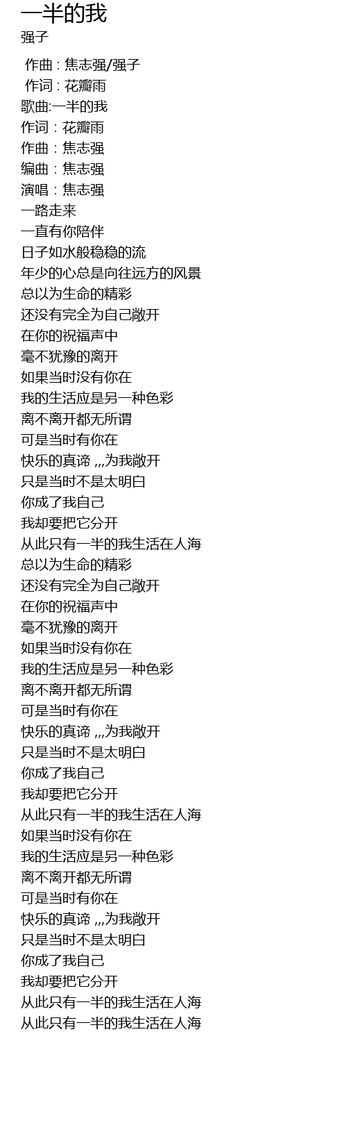 | [02:23.64] | 从此只有一半的我生活在人海 |