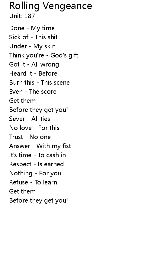 | Song | Rolling Vengeance |