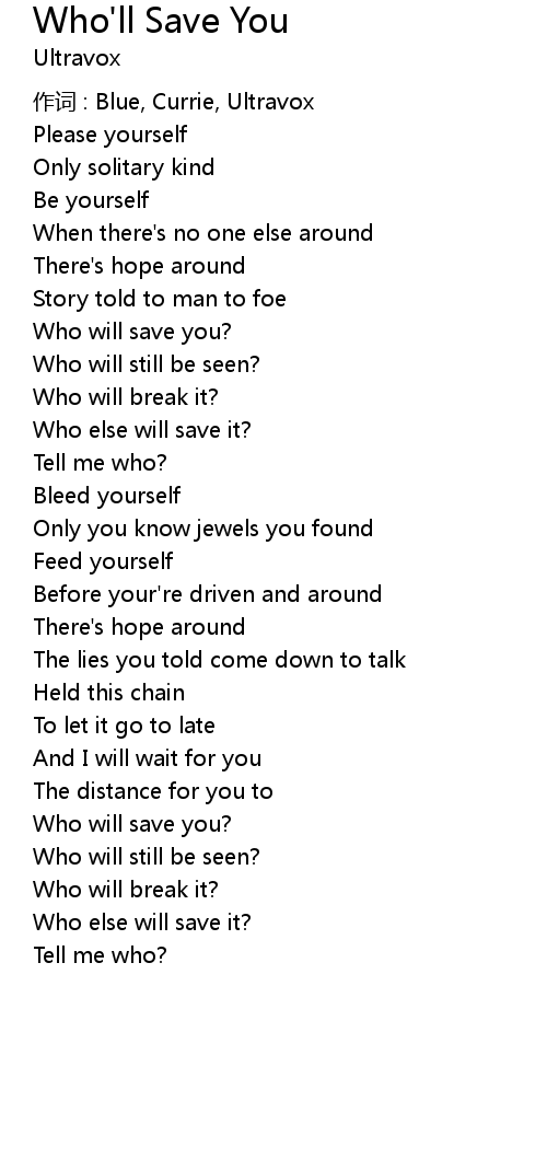 | 作词 : Blue, Currie, Ultravox | |