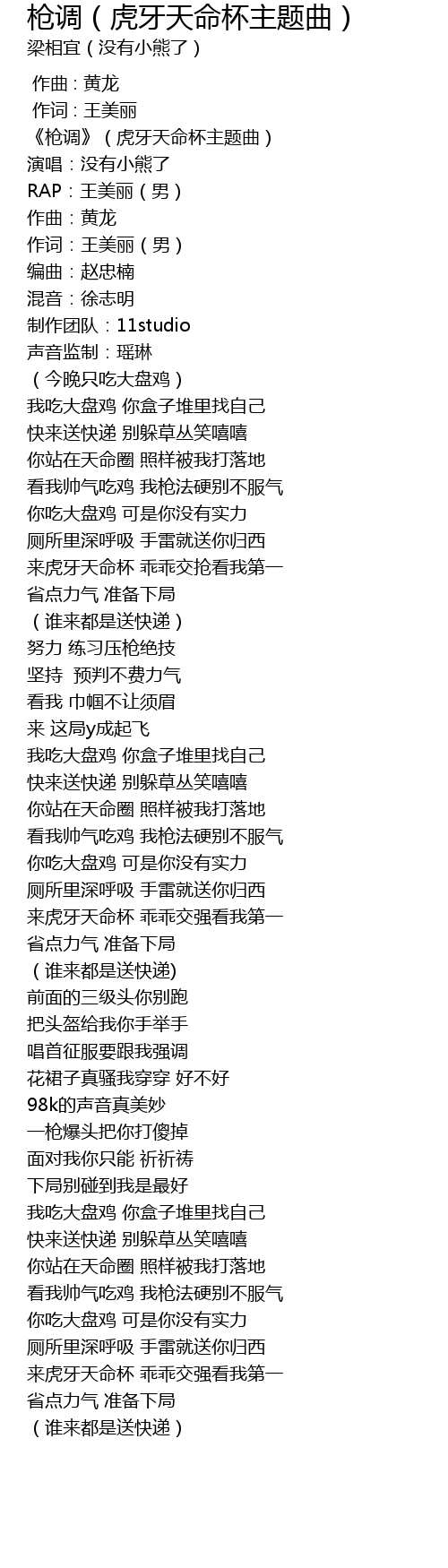 | [01:21.372] | 看我帅气吃鸡 我枪法硬别不服气 |