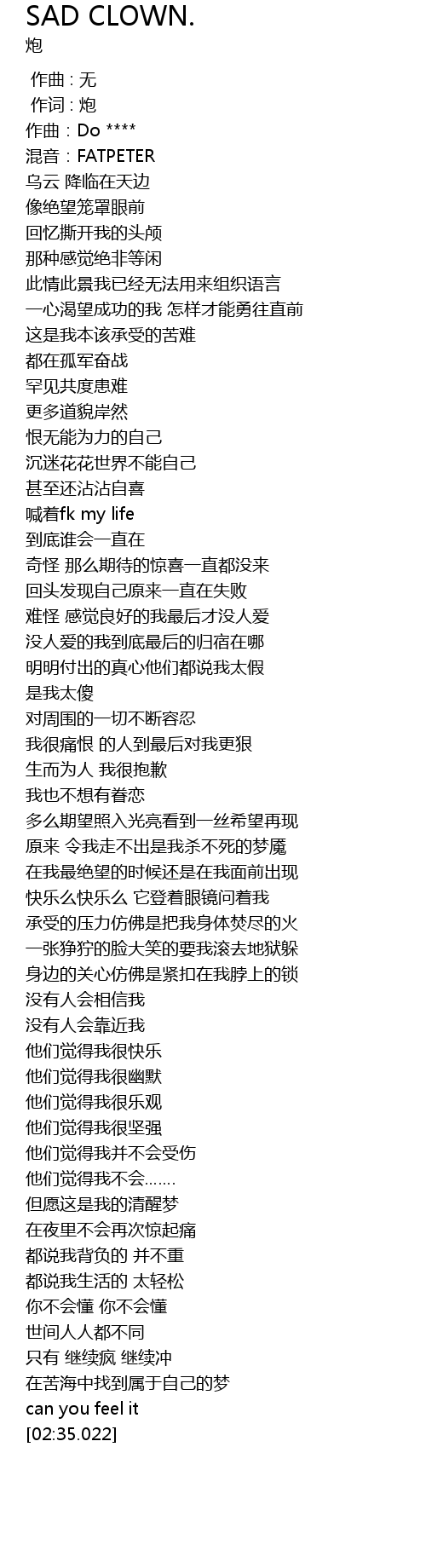 | [00:39.123] | 没人爱的我到底最后的归宿在哪 |
