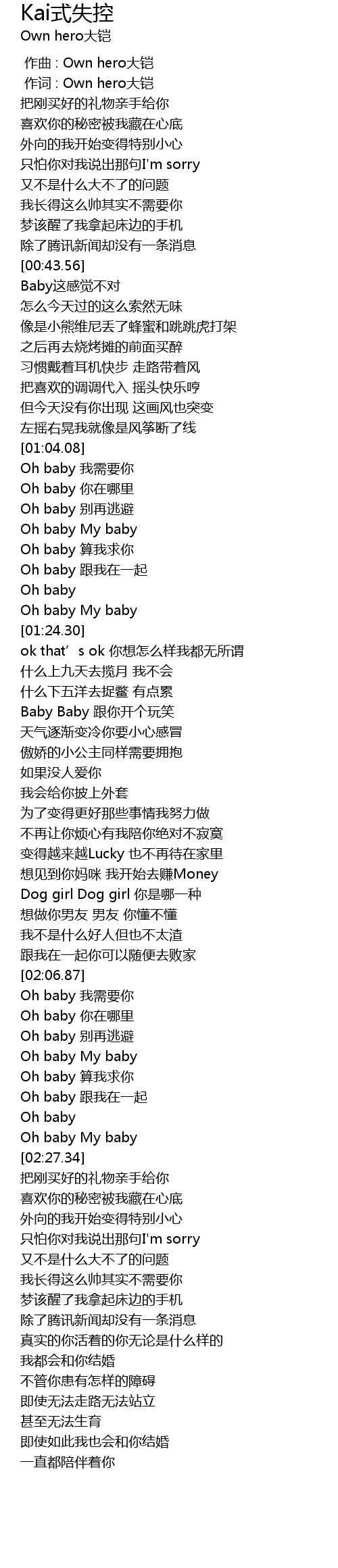 | [00:44.36] | Baby这感觉不对 |