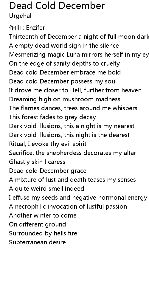 | Dead cold December possess my soul | |
