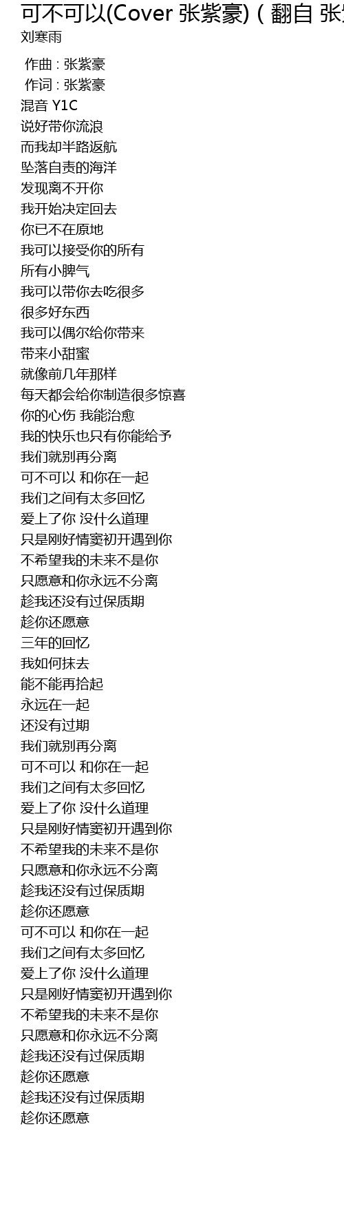 | [00:01.000] | 作词 : 张紫豪 |