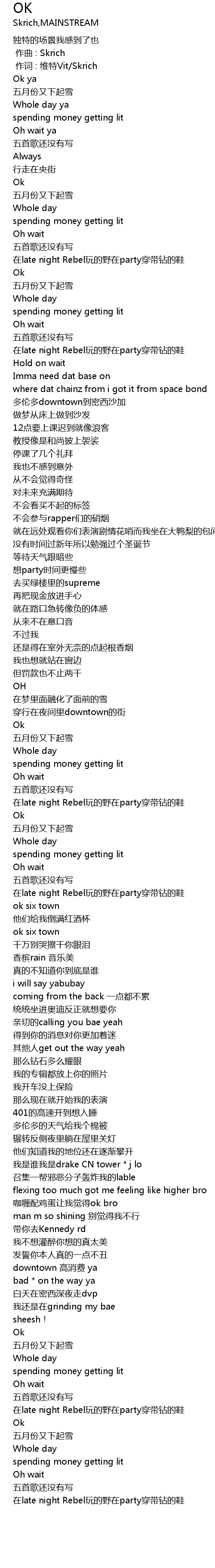 | [00:41.383] | 在late night Rebel玩的野在party穿带钻的鞋 |