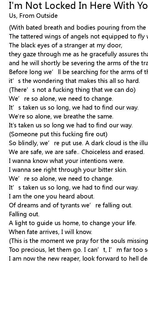 | Song | I'm Not Locked In Here With You, You're Trapped In Here With Me |