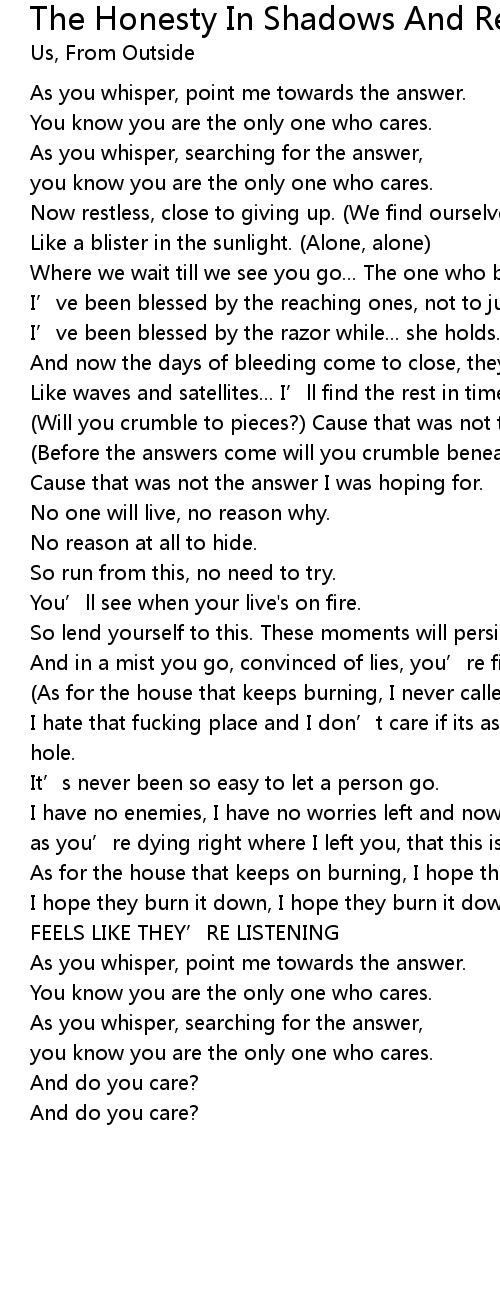 | Song | The Honesty In Shadows And Reflections |