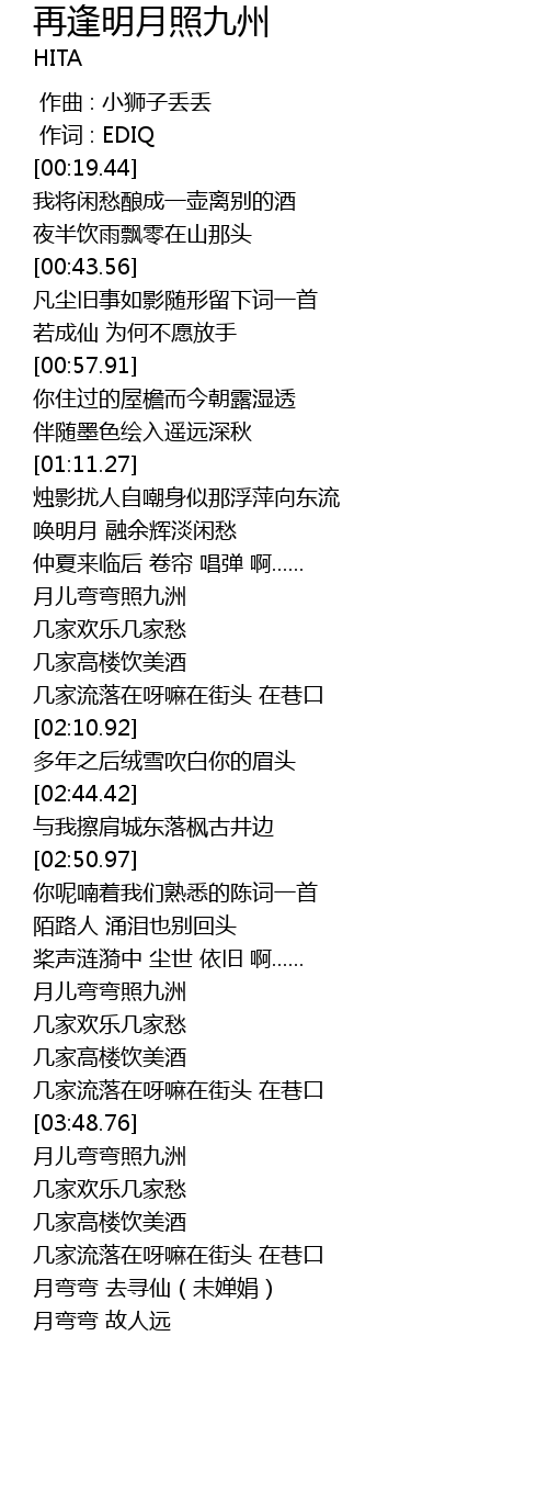 | [03:19.54] | yuè ér wān wān zhào jiǔ zhōu |