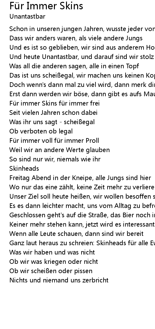 | Ganz laut heraus zu schreien: Skinheads fü r alle Ewigkeit! | |