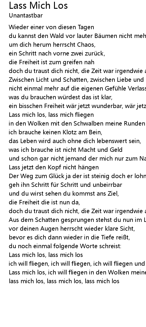 | Lass mich los, ich will fliegen in den Wolken meine Runde ziehen | |