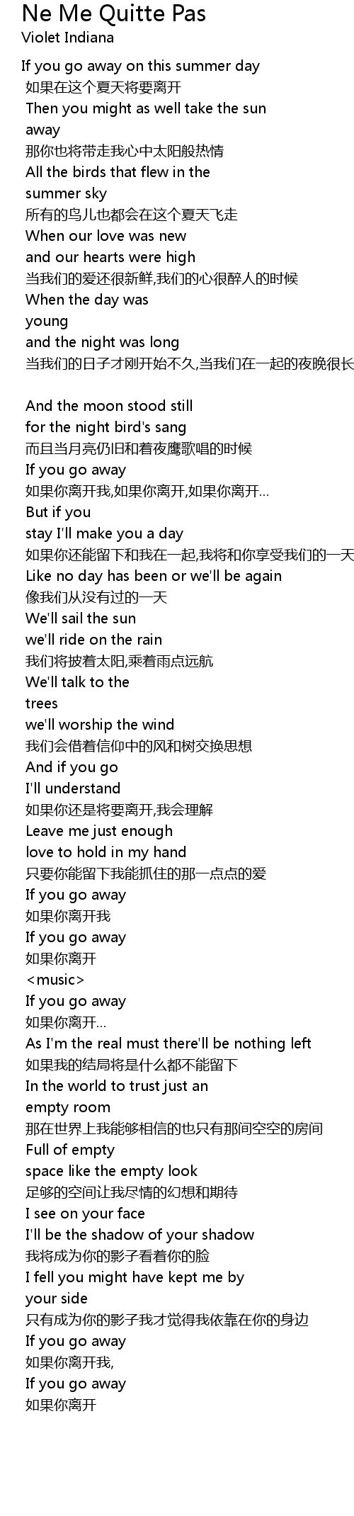 | rú guǒ nǐ hái shì jiāng yào lí kāi, wǒ huì lǐ jiě | |