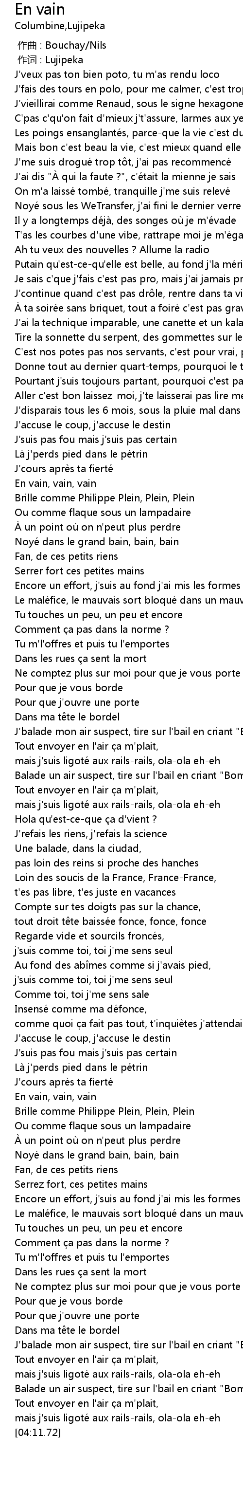 | [01:33.23] | Brille comme Philippe Plein, Plein, Plein |