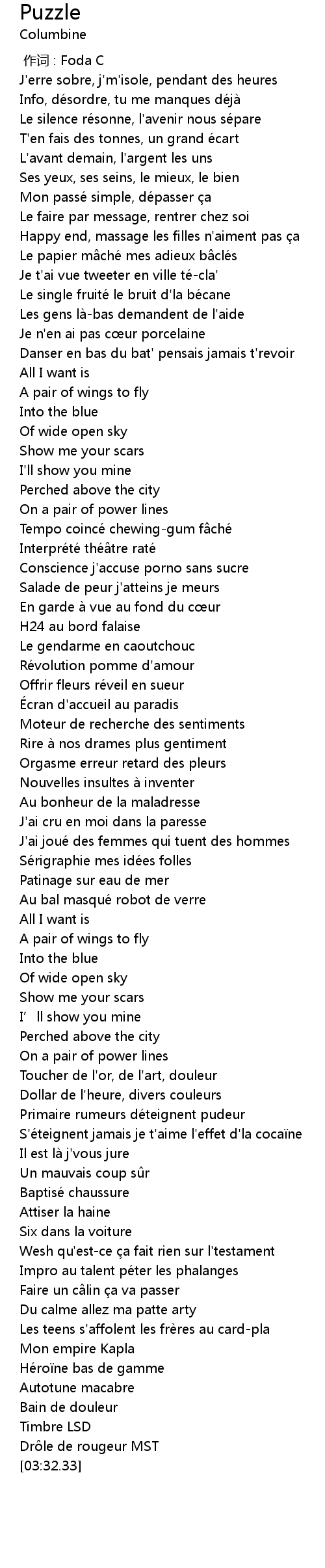 | [02:57.47] | S'éteignent jamais je t'aime l'effet d'la cocaïne |
