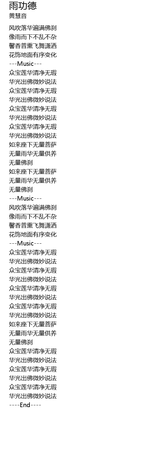 | [04:11.72] | 众宝莲华清净无瑕 |