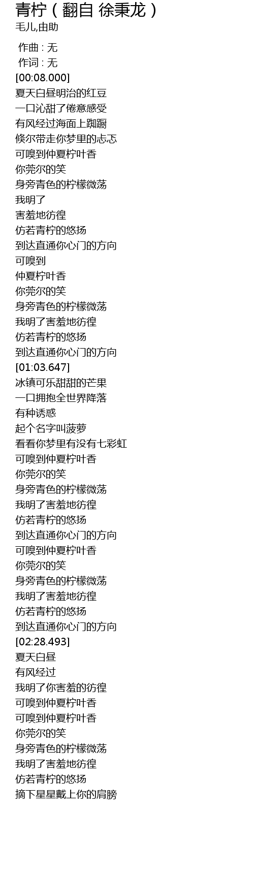| [01:56.754] | 身旁青色的柠檬微荡 |
