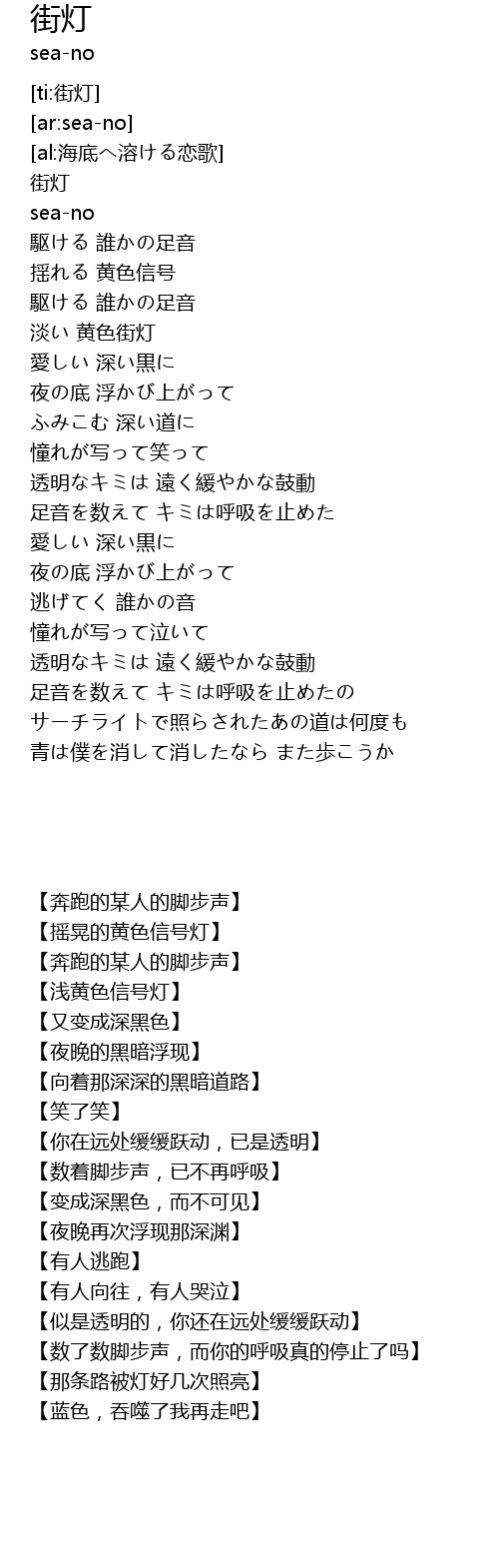 | [04:13.70] | 青は僕を消して消したなら また歩こうか |