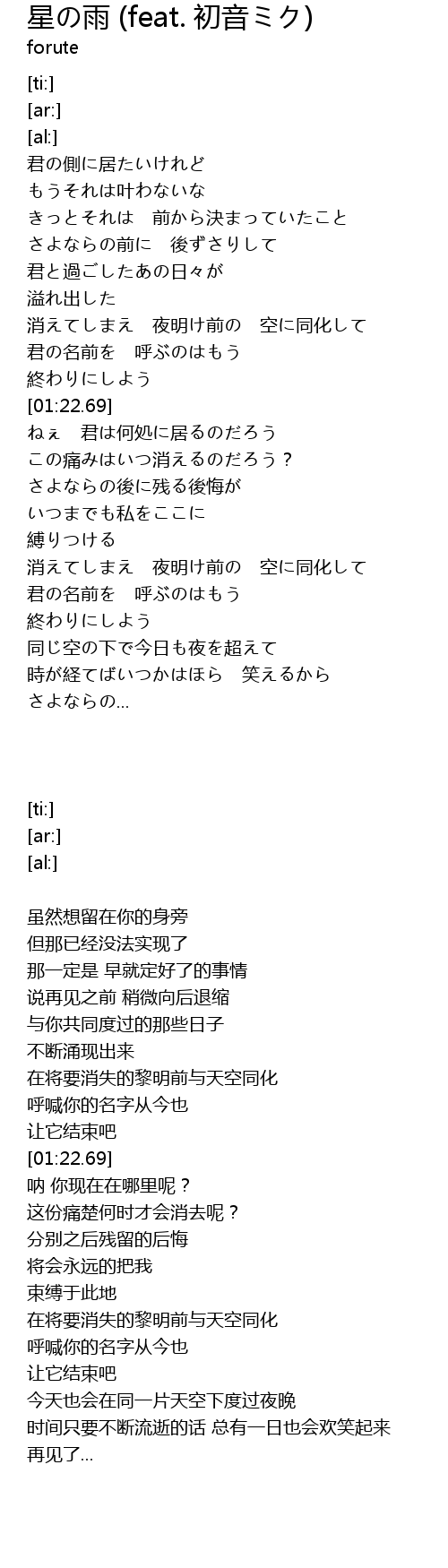 | [01:40.21] | ねぇ 君は何処に居るのだろう |