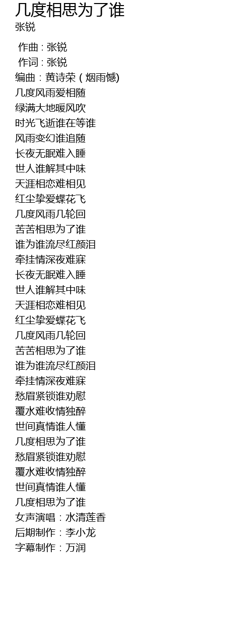 | [04:32.63] | 几度相思为了谁 |