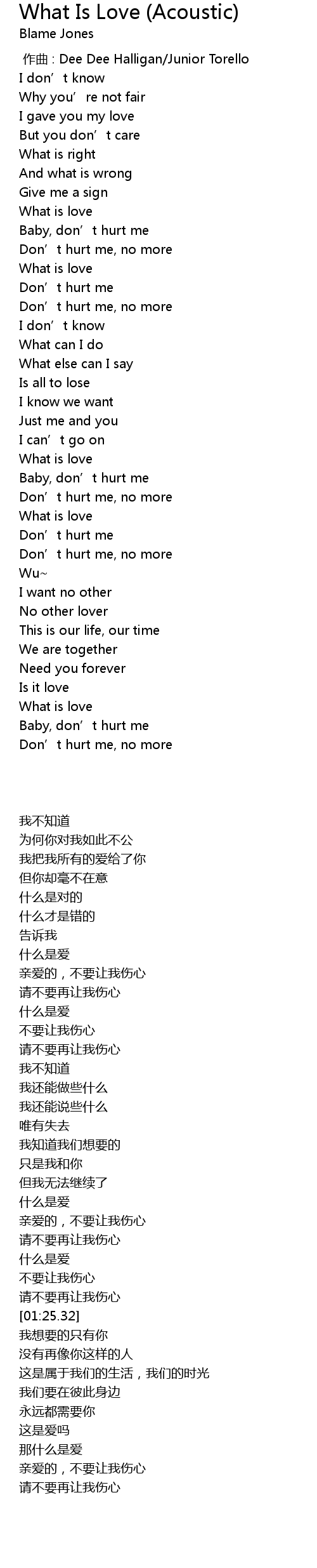 | [02:04.70] | What is love |