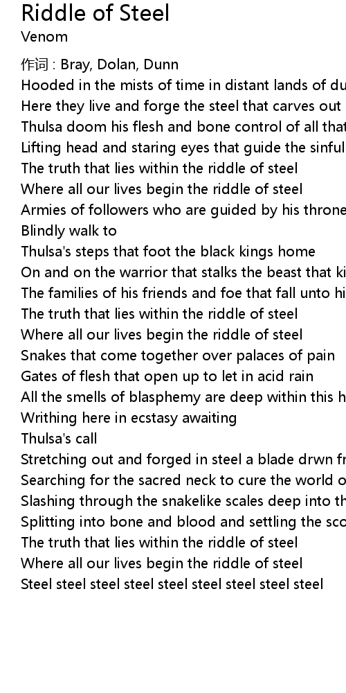 | Thulsa doom his flesh and bone control of all that's fake | |