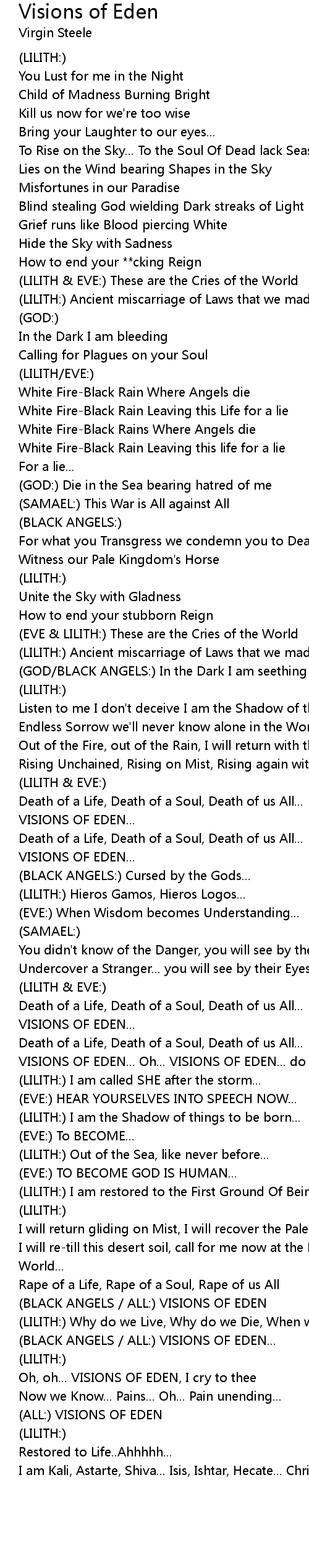 VISIONS OF EDEN... Oh... VISIONS OF EDEN... do we cry for thee |