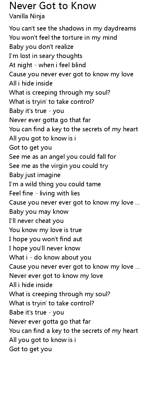 Cause you never ever got to know my love ... |