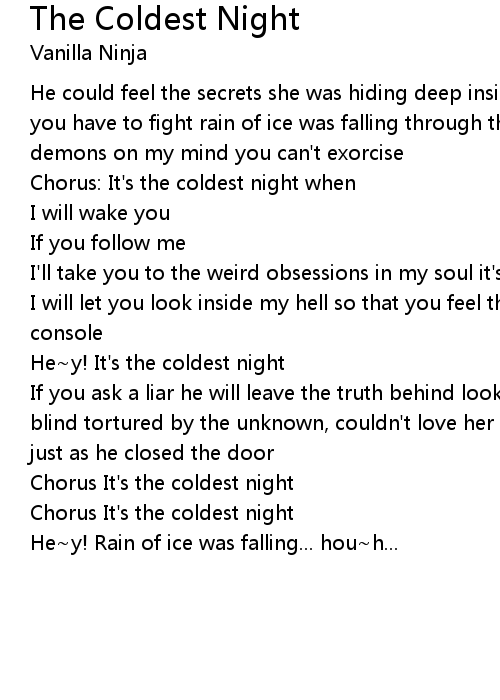 I'll take you to the weird obsessions in my soul it's the coldest night wehn |
