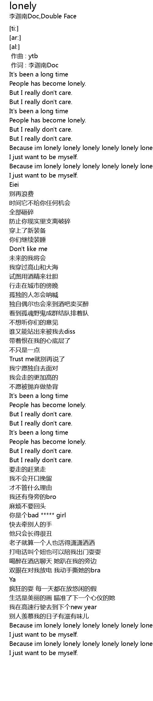 | [02:13.26] | Because im lonely lonely lonely lonely lonely lonely |