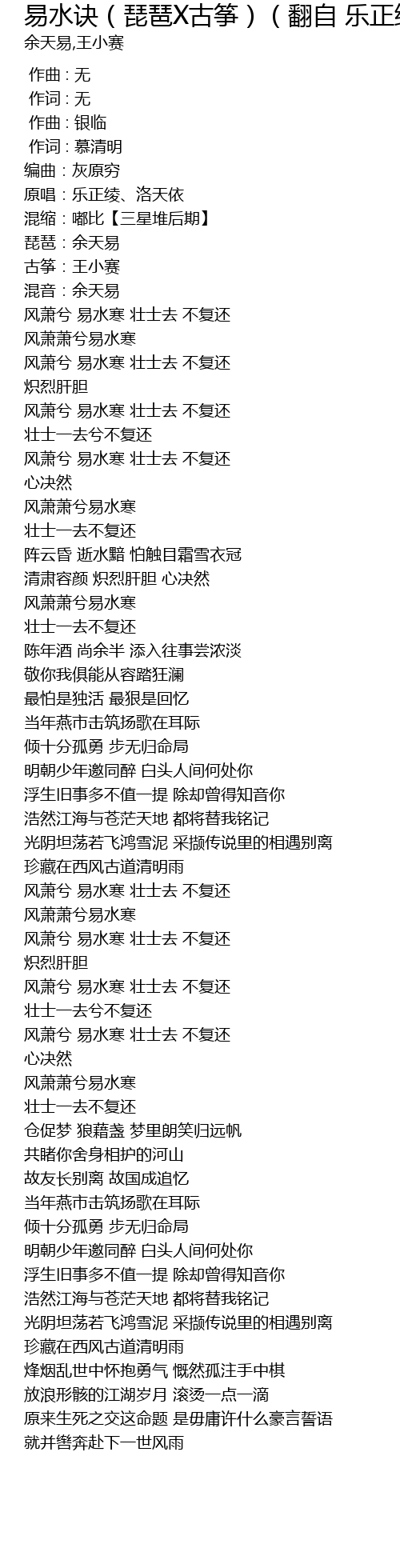| [02:39.40] | fēng xiāo xiāo xī yì shuǐ hán |