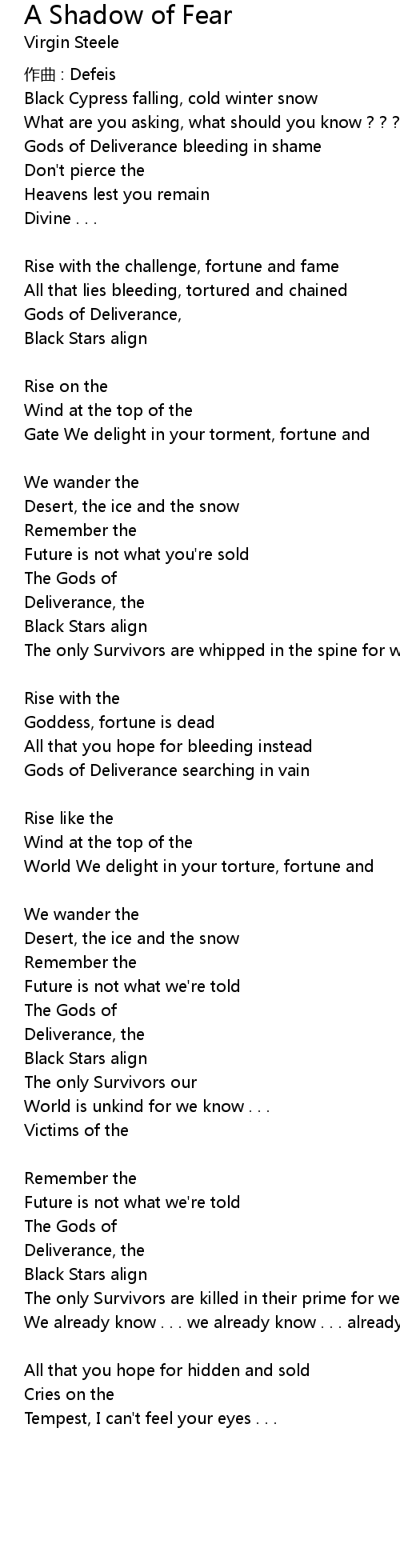 | Song | A Shadow of Fear |